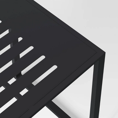 Even a small balcony or patio can benefit from the addition of this stylish Henning 3-Piece Patio Bistro Set from Project 62™. This coordinated outdoor dining setup includes two bistro-style armchairs made with a black steel frame and gray fabric sling seats, as well as a matching slat-top bistro table for a convenient outdoor eating and entertaining spot. Weather-resistant construction helps this modern patio bistro set hold up to the elements, while a simple and stylish color palette makes it a versatile choice for pairing with your existing outdoor decor.